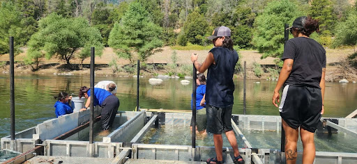 Through a grant with California Department of Fish and Wildlife (CDFW), the Winnemem Wintu Tribe has been able to employ Tribal members as Cultural Resource Specialists since 2023 to care for Winter Run Nur who are being hatched and raised in special riverside incubators and then reintroduced to the Winnemem Waywaket. The team also helps with ecological restoration projects in the watershed. In 2025, we welcomed new team members Nate Wilson, Cas Garcia, and Brandon Baker. The Cultural Resource Specialists are the heart of our salmon restoration work and spend every day on the river caring for the Nur eggs and safely trapping and moving them around Shasta Dam until a volitional fish passage can be built. Cultural Resource Specialists also tended to our homelands along the Winnemem Waywaket through invasive species removal, cultural burns, and native species propagation.